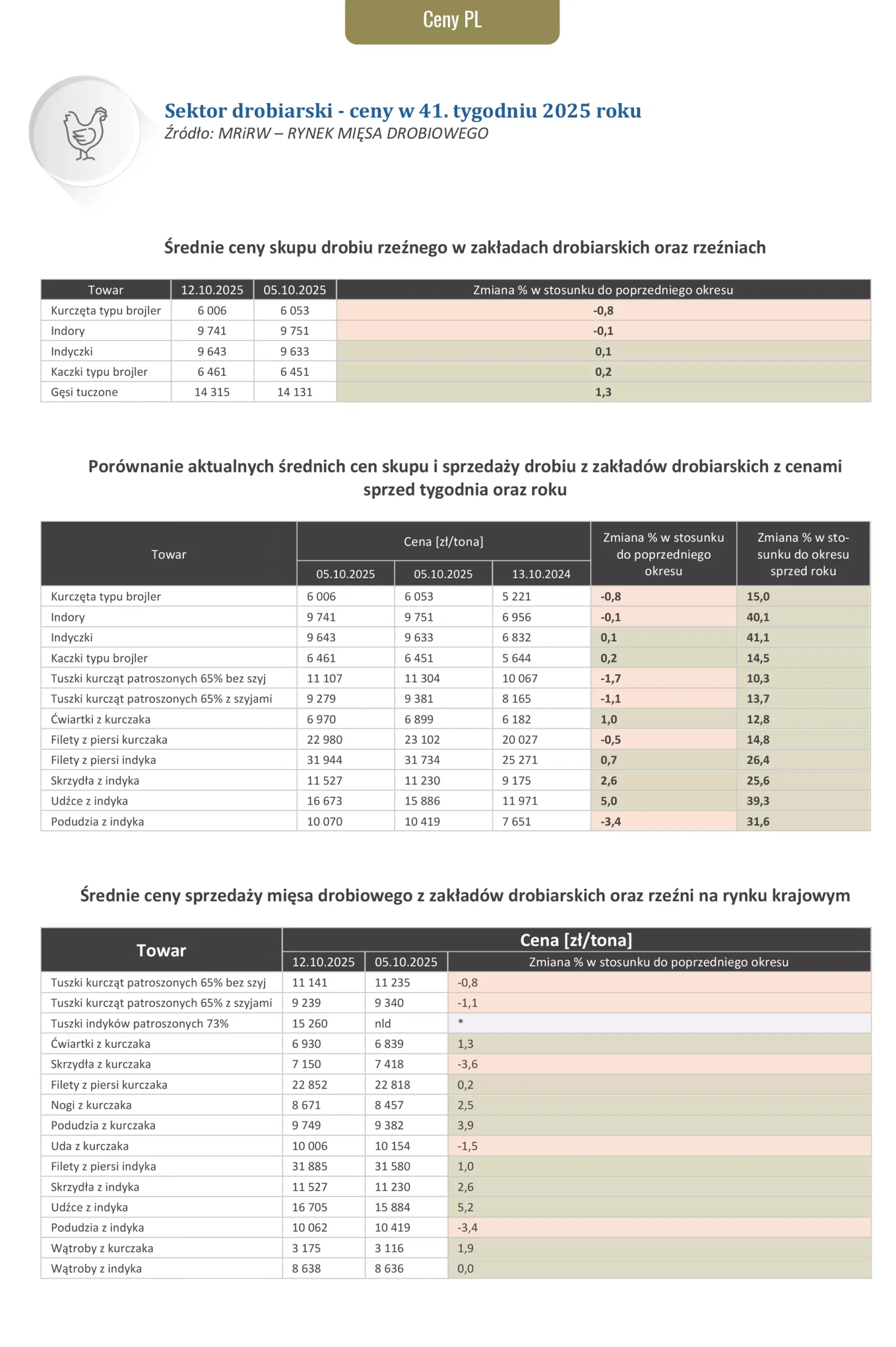 Ceny dotyczące drobiu za okres 06.10.2025 – 12.10.2025