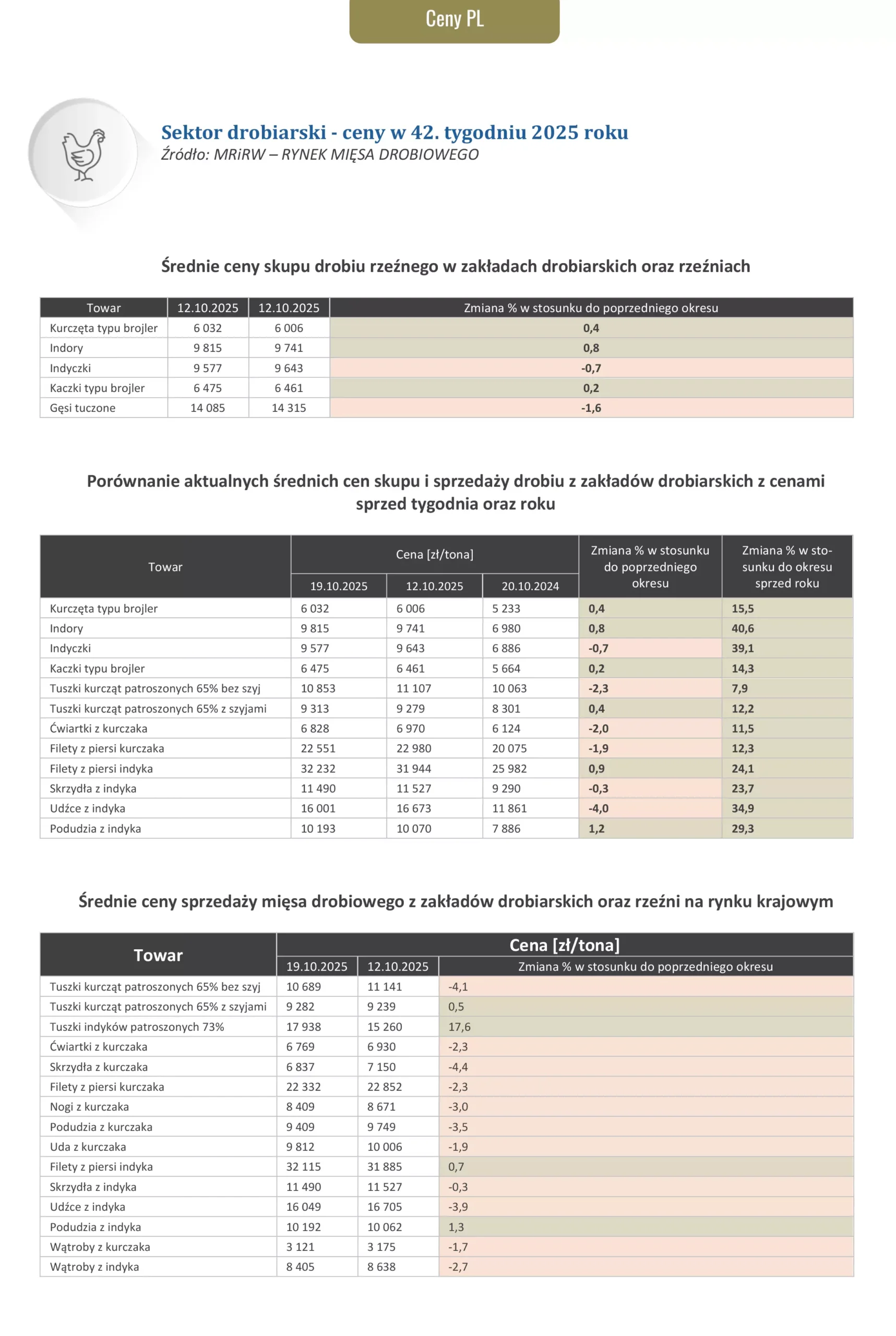 Ceny dotyczące drobiu za okres 13.10.2025 – 19.10.2025