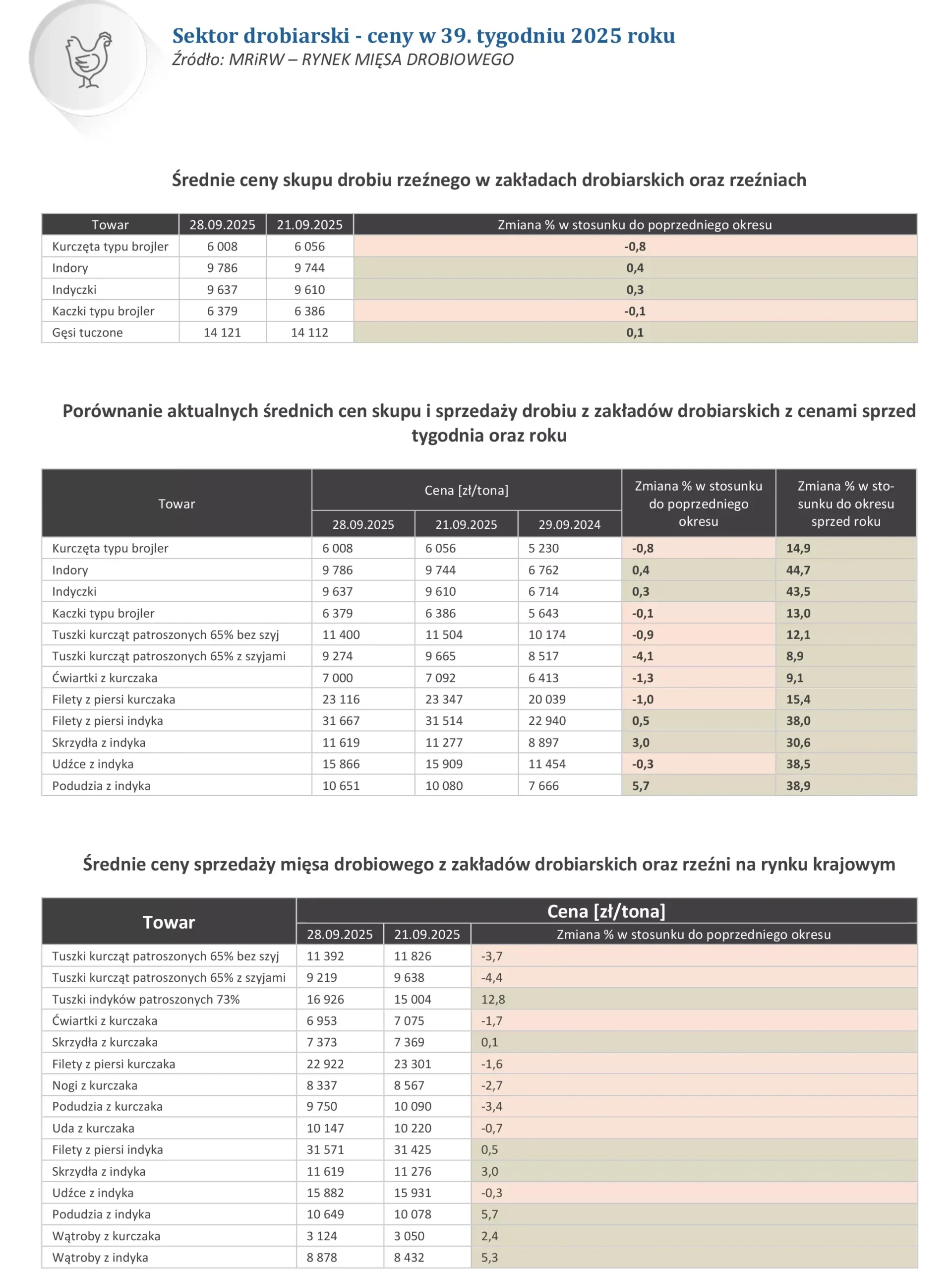 Ceny dotyczące drobiu za okres 22.09.2025 – 28.09.2025