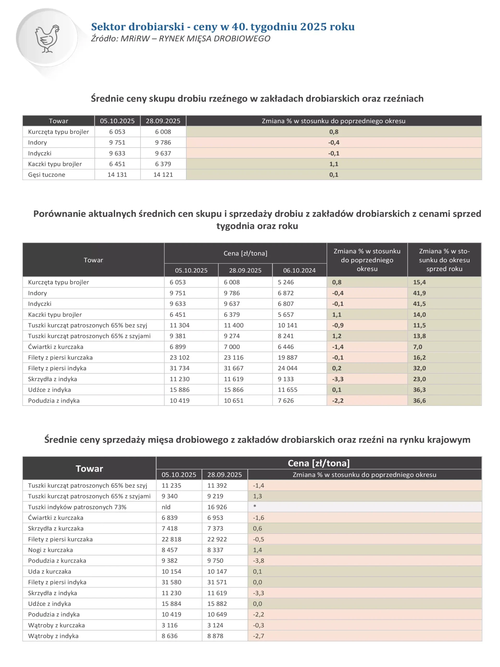 Ceny dotyczące drobiu za okres 29.09.2025 – 05.10.2025