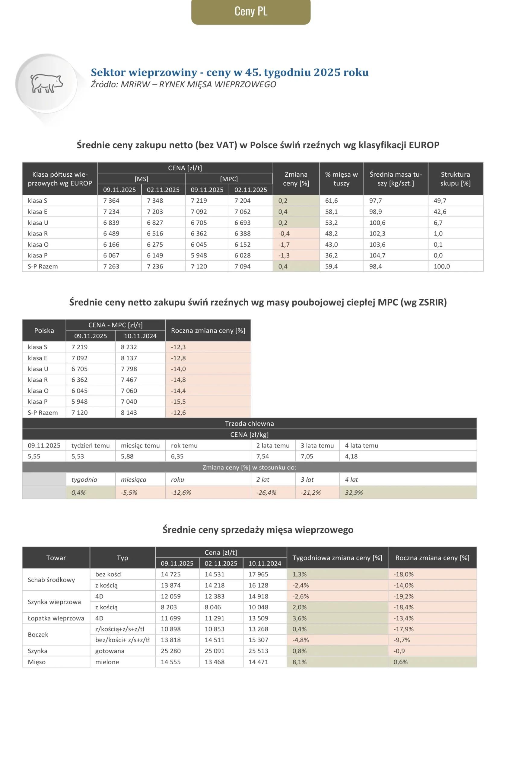 Ceny dotyczące wieprzowiny za okres 03.11.2025 – 09.11.2025