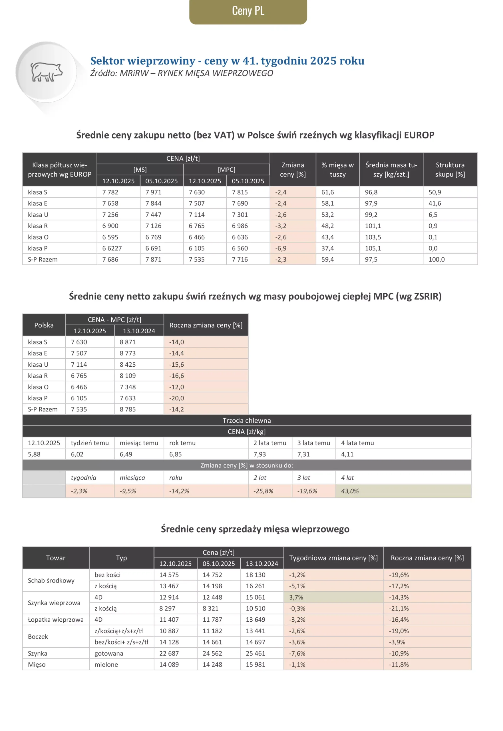 Ceny dotyczące wieprzowiny za okres 06.10.2025 – 12.10.2025