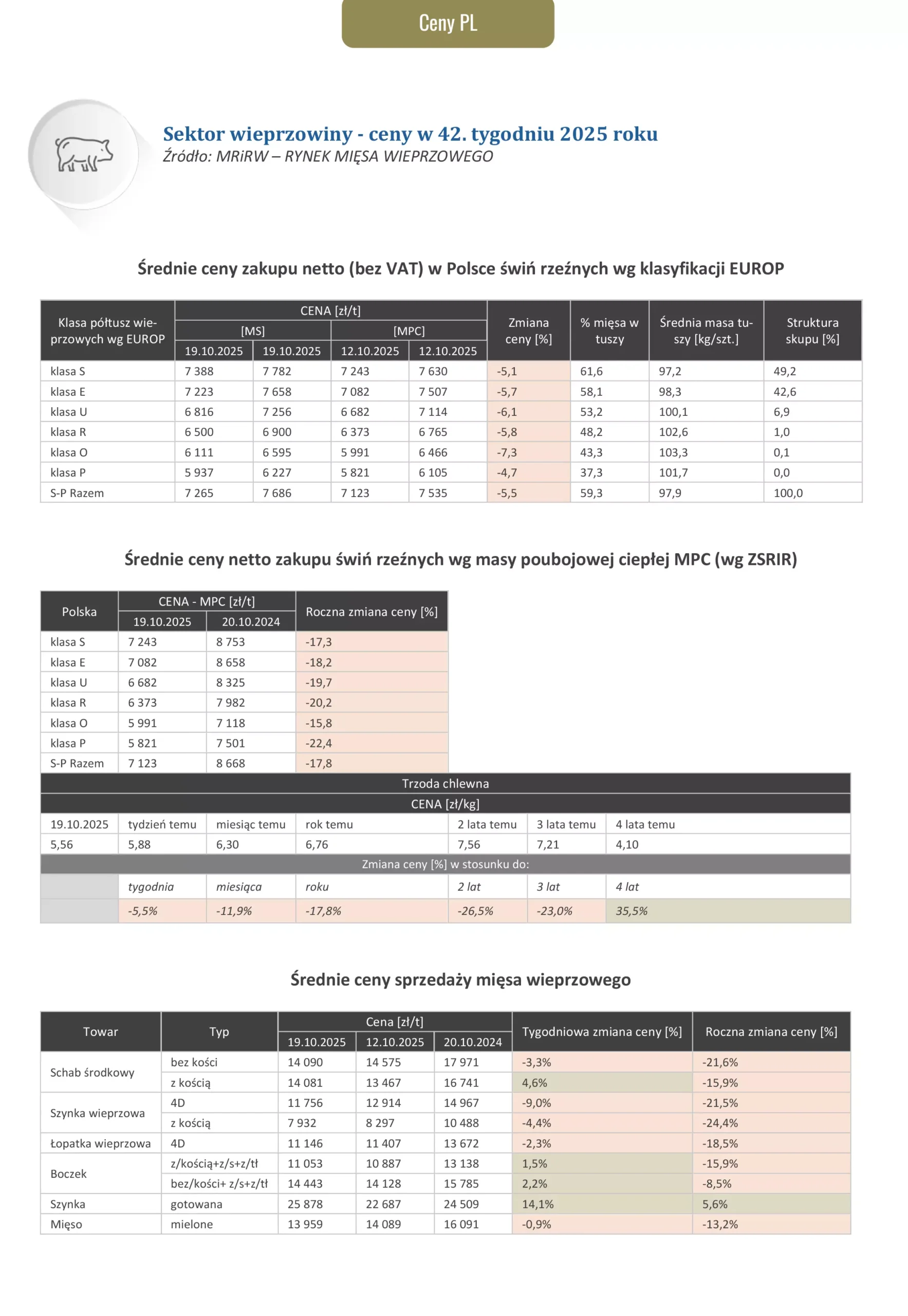 Ceny dotyczące wieprzowiny za okres 13.10.2025 – 19.10.2025