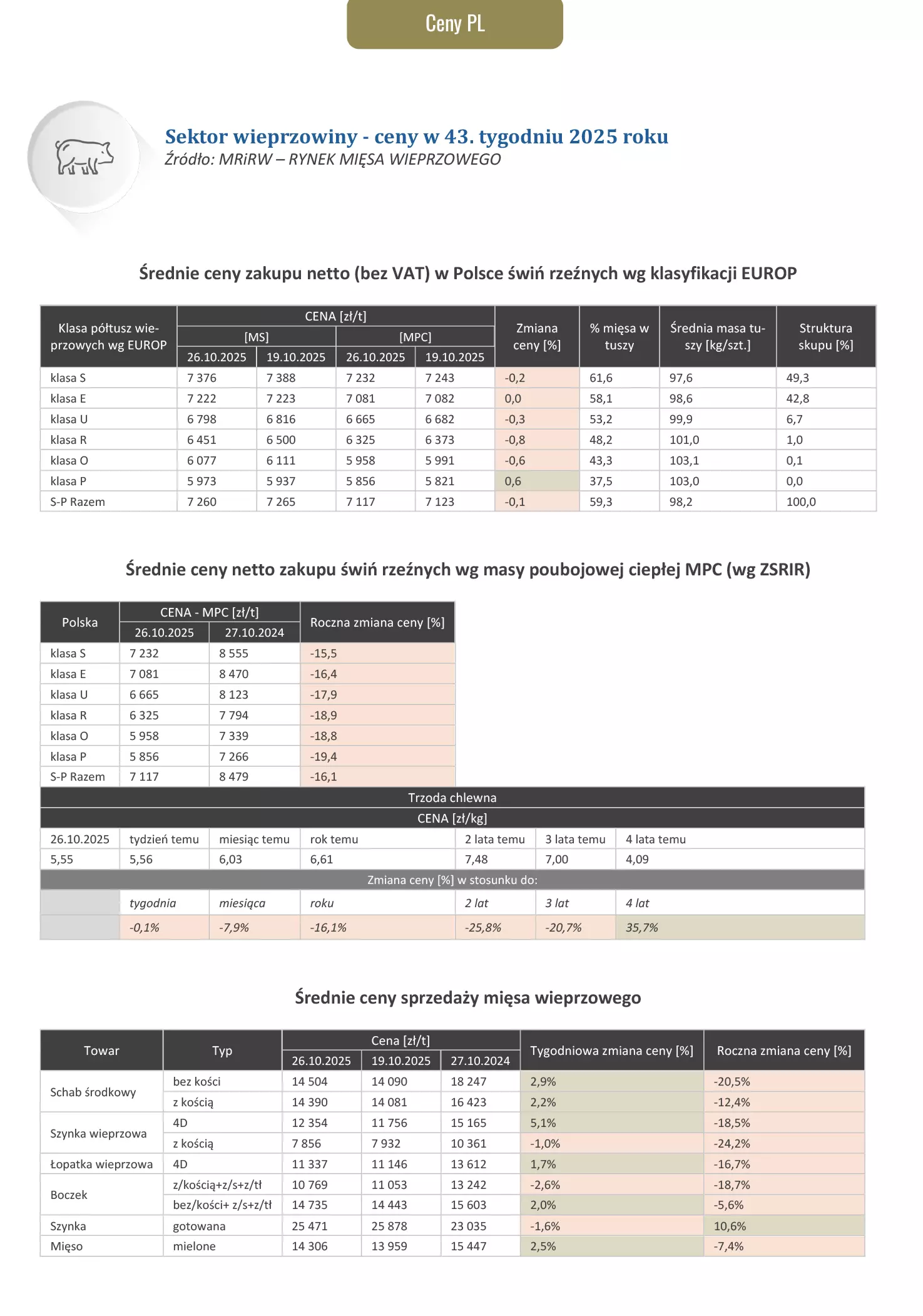 Ceny dotyczące wieprzowiny za okres 20.10.2025 – 26.10.2025