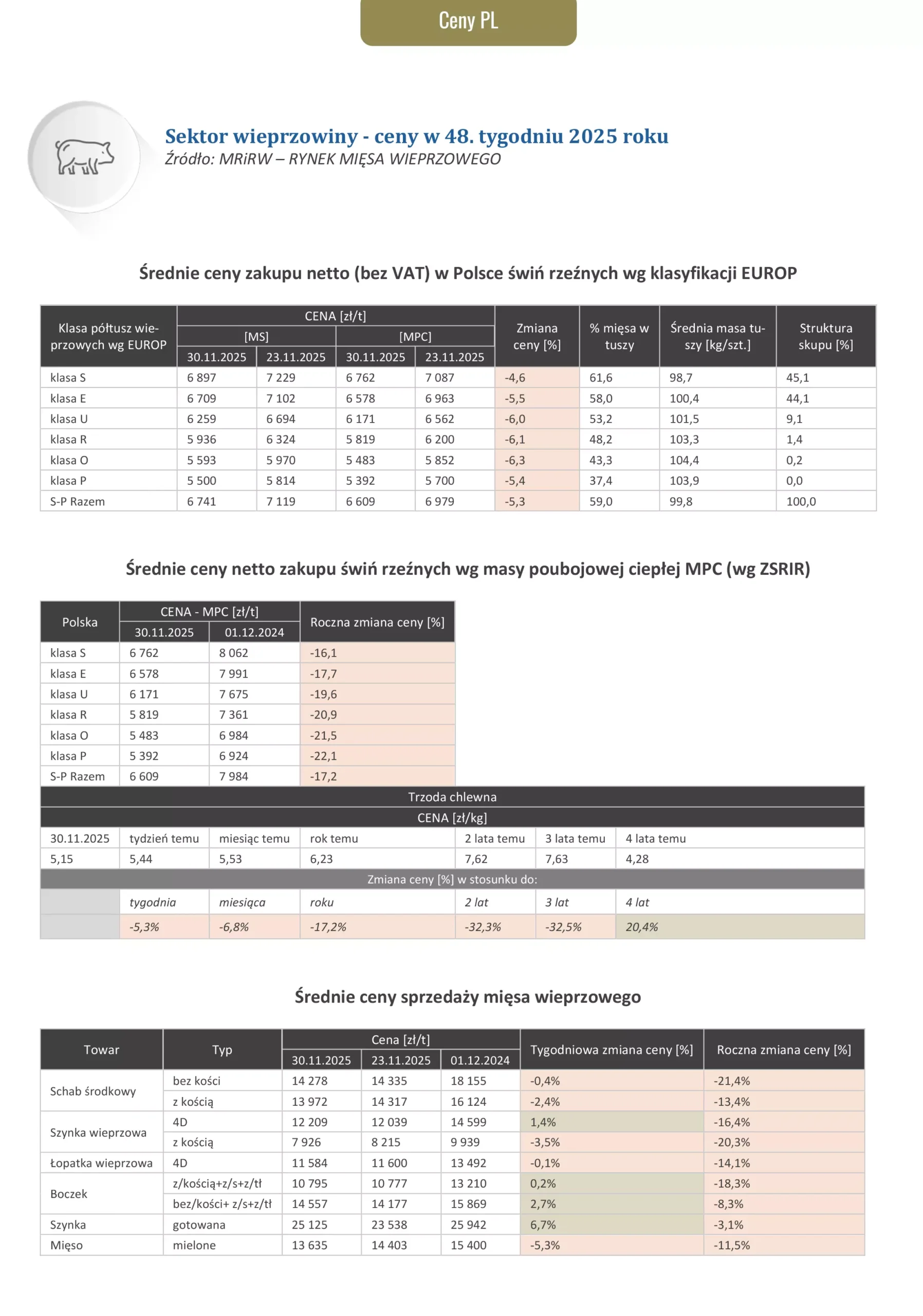 Ceny dotyczące wieprzowiny za okres 24.11.2025 – 30.11.2025