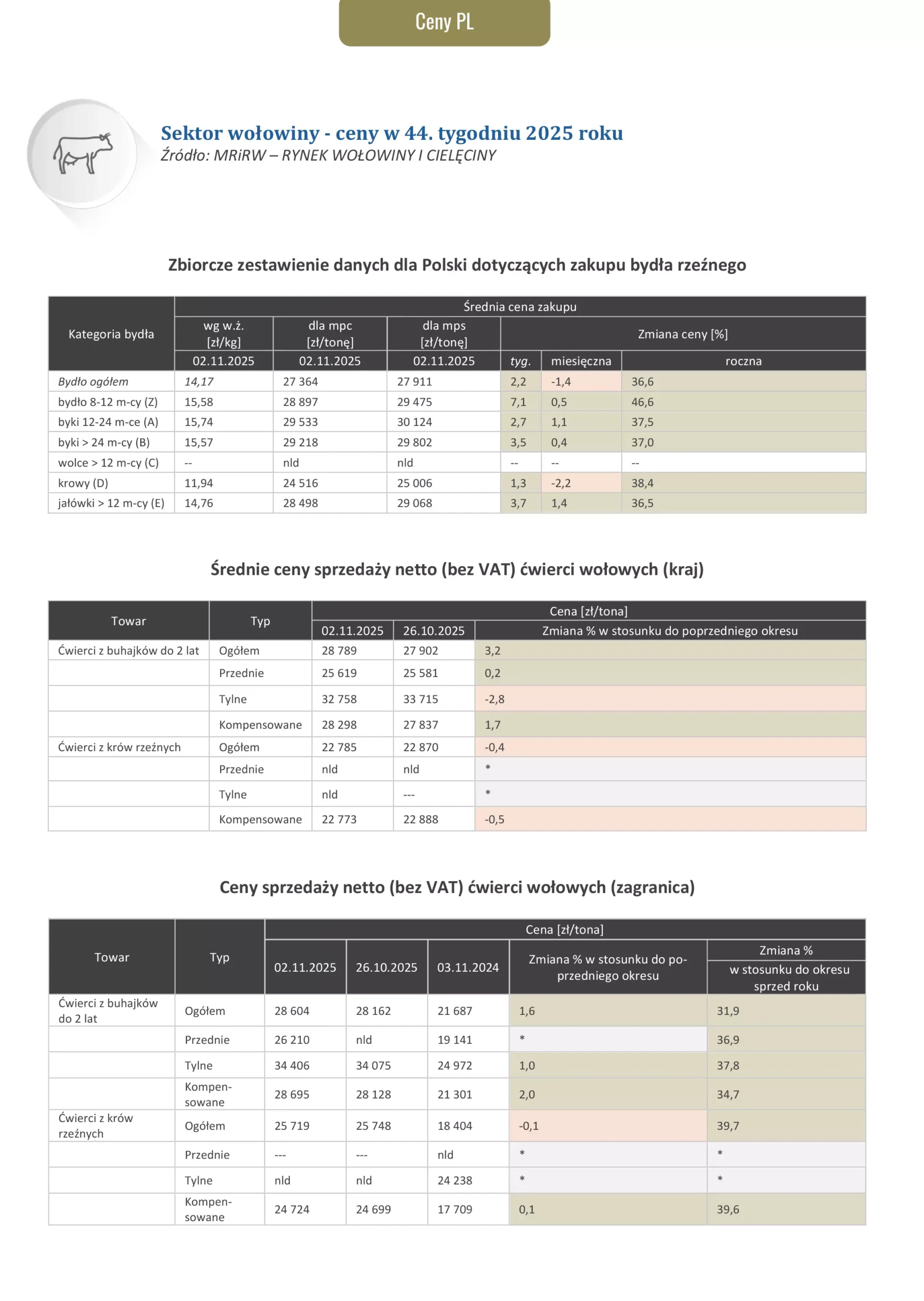 Ceny dotyczące wołowiny za okres 27.10.2025 – 02.11.2025