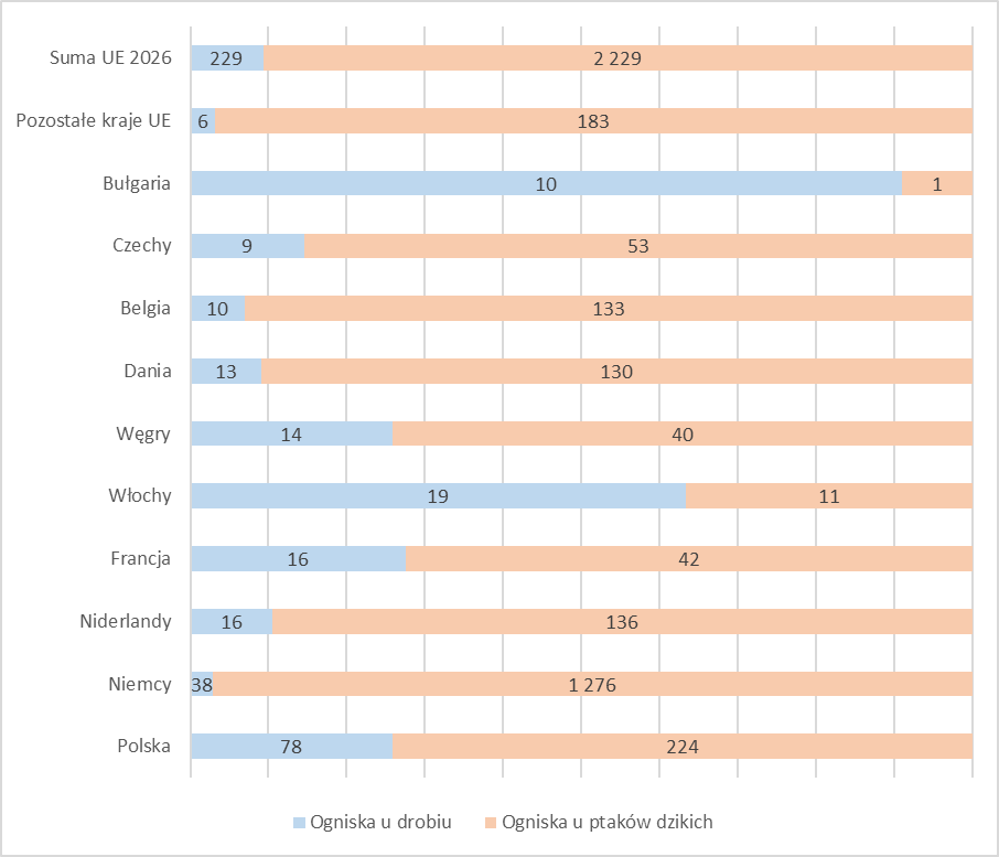 Wykres 1. Sytuacja HPAI w Unii Europejskiej – stan na 13.04.2026