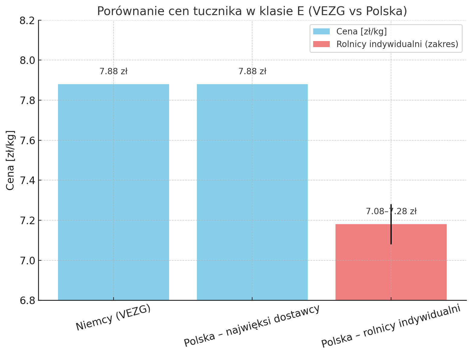 Ceny tuczników w Polsce odbiegają od niemieckiego poziomu. Na stawki zbliżone do VEZG mogą liczyć wyłącznie najwięksi dostawcy, którzy jednorazowo oddają do skupu pełny transport (min. 1–2 samochody ciężarowe) tuczników. Reszta rolników zmaga się z propozycjami skupu niższymi nawet o 60–80 groszy na kilogramie żywca w klasie E.