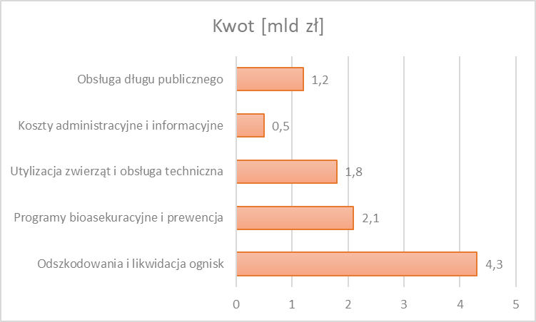 W ciągu 11 lat wydatkowano 8,2 mld zł na zwalczanie choroby – w tym na odszkodowania, utylizację, programy bioasekuracyjne i kampanie prewencyjne. Po doliczeniu kosztów obsługi długu publicznego (1,2 mld zł) łączny ciężar finansowy dla budżetu centralnego osiągnął 9,4 mld zł.